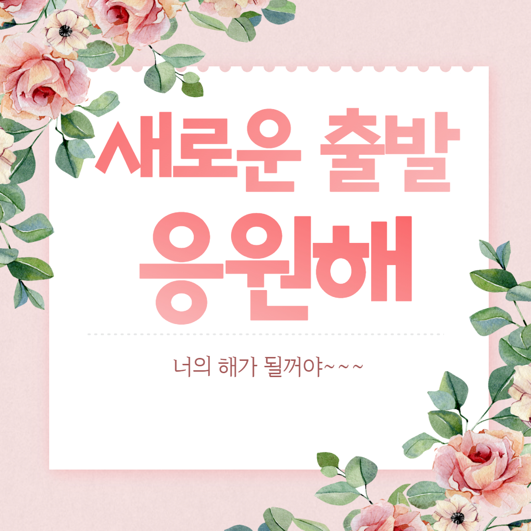 새로운 시작을 응원하고 지금처럼 하면 다 잘 될 거야. 꽃길만 걷자.