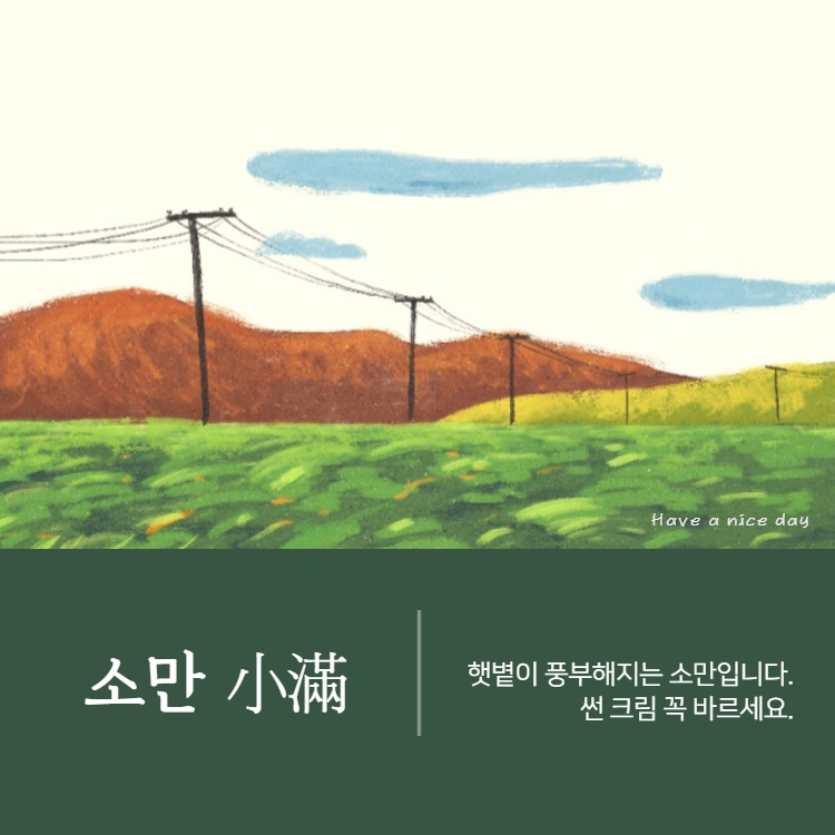 소만은 햇볕이 풍부하고 만물이 점차 생장하여 가득합니다. 초여름을 알리는 절기이기도 하지요.