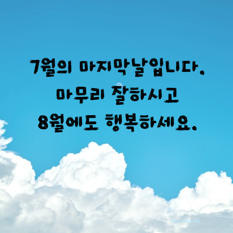 7월의 마지막 날 인사말 이미지입니다. 7월 31일 마지막 날입니다. 마무리 잘하시고 8월에도 행복하세요.