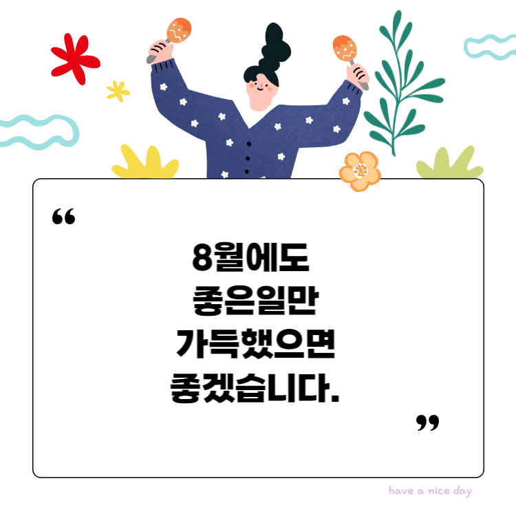 8월에도 좋은 일만 가득했으면 좋겠습니다.