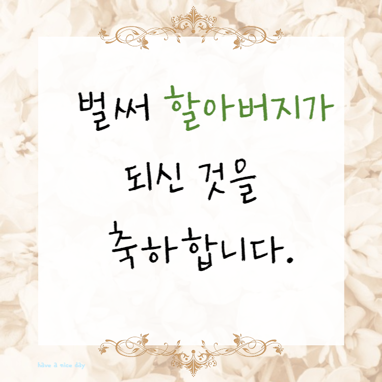 손주를 본 할아버지에게 보내는 축하 문구입니다. 벌써 할아버지가 된것을 축하합니다.