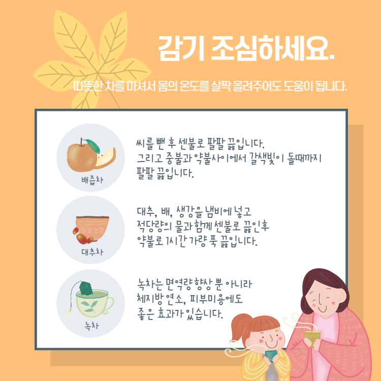 일교차가 심합니다. 감기 조심하세요.