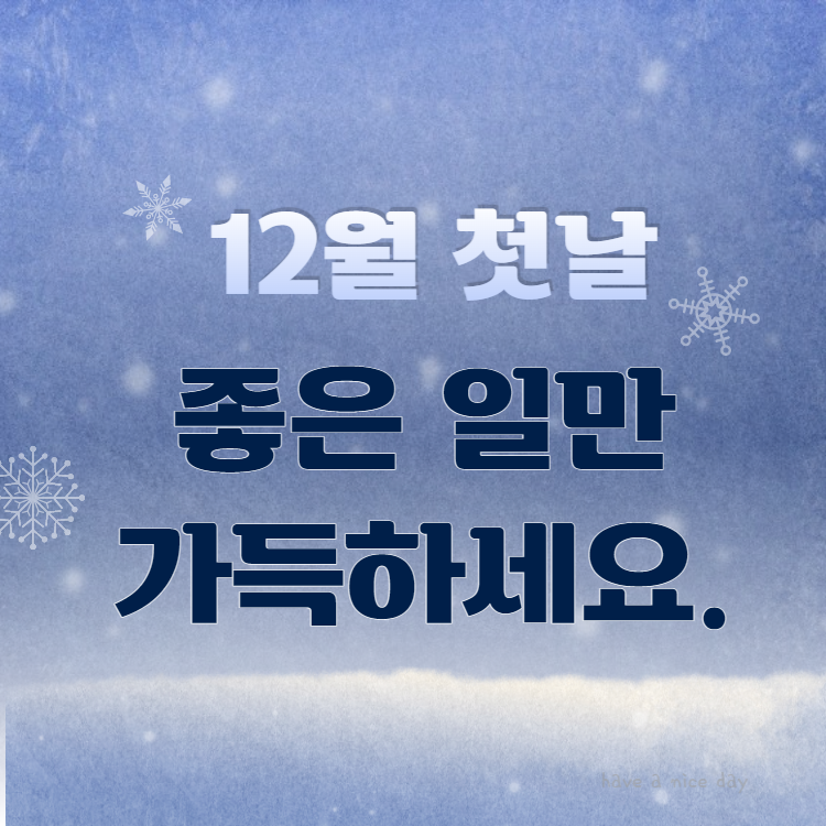 12월 첫날 인사말 이미지입니다. 12월 1일 인사 문구입니다. 좋은 일만 가득한 12월 되세요.