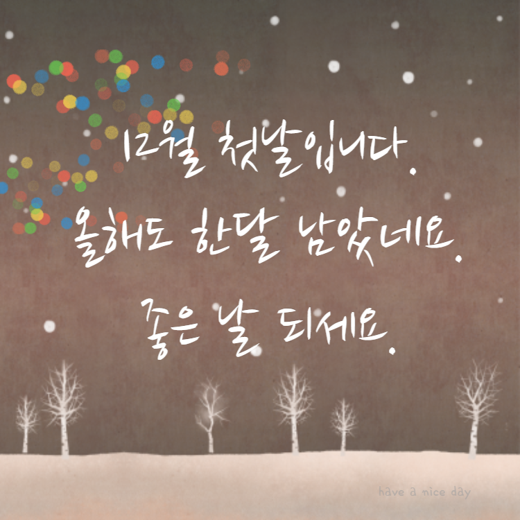 12월 맞이하여 첫날 아침에 좋은 인사말 이미지 모음을 만들어보았으니 많은 이용 부탁드리겠습니다.