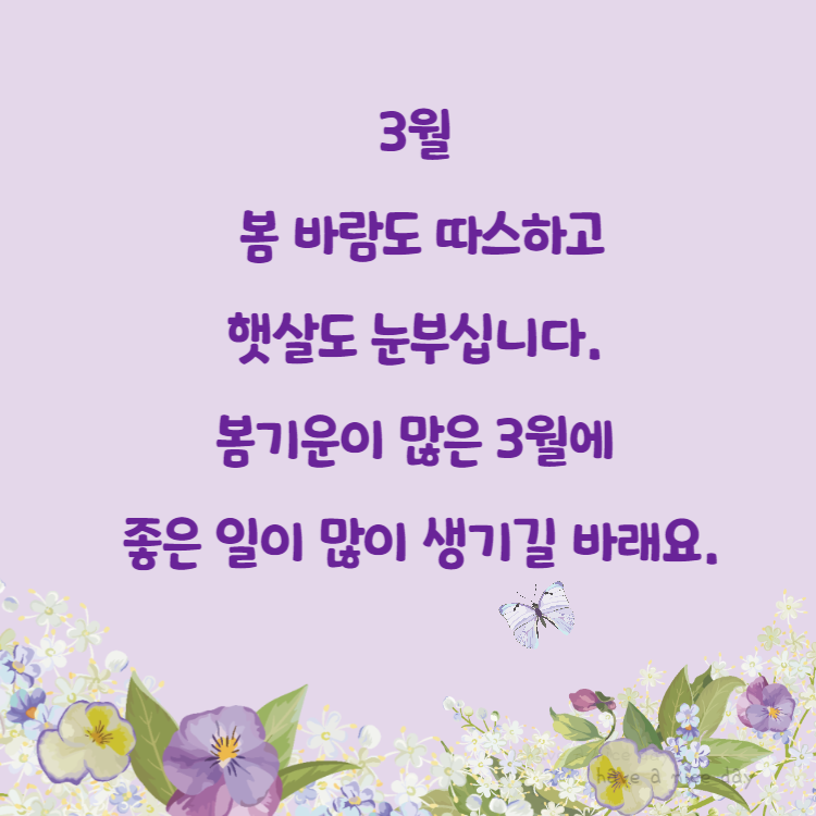 3월 인사말 이미지 모음입니다. 봄바람도 따스하고 햇살도 눈부십니다. 봄기운 가득한 3월에 좋은 일이 많이 생기기를 바래요.