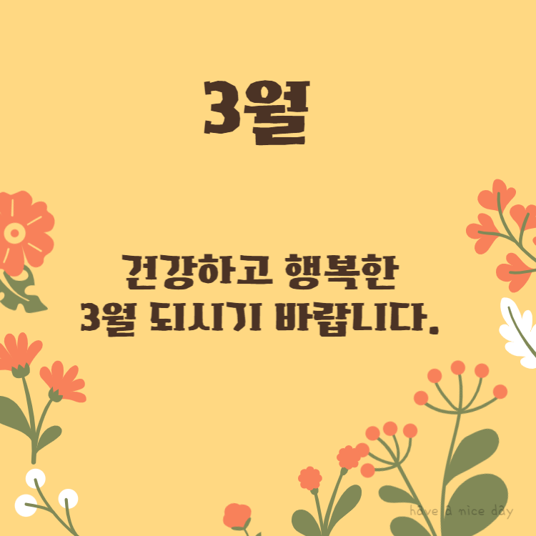 3월 초 인사말 이미지입니다. 건강하고 행복한 3월 되시기 바랍니다.
