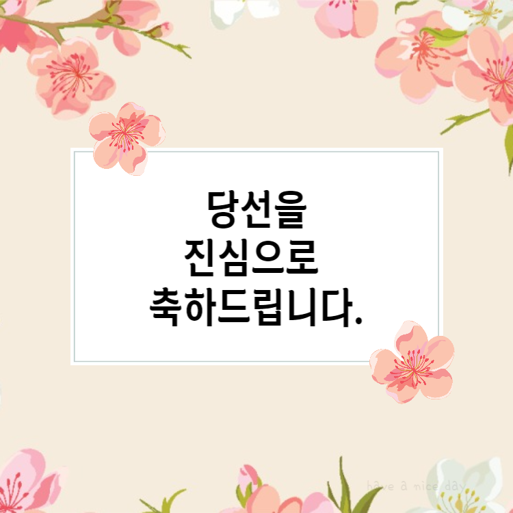 선거에서 당선되었을 때 축하 문구를 만들어 보았습니다. 요즘 3월이라서 대표, 회장, 부회장 선거를 많이 하지요. 그때 당선되었을 때 보내면 좋은 당선 축하 문구를 만들어 보았습니다. 문자나 카톡으로 보내기 좋은 이미지로 만들어 보았으니 많은 이용부탁드리겠습니다.