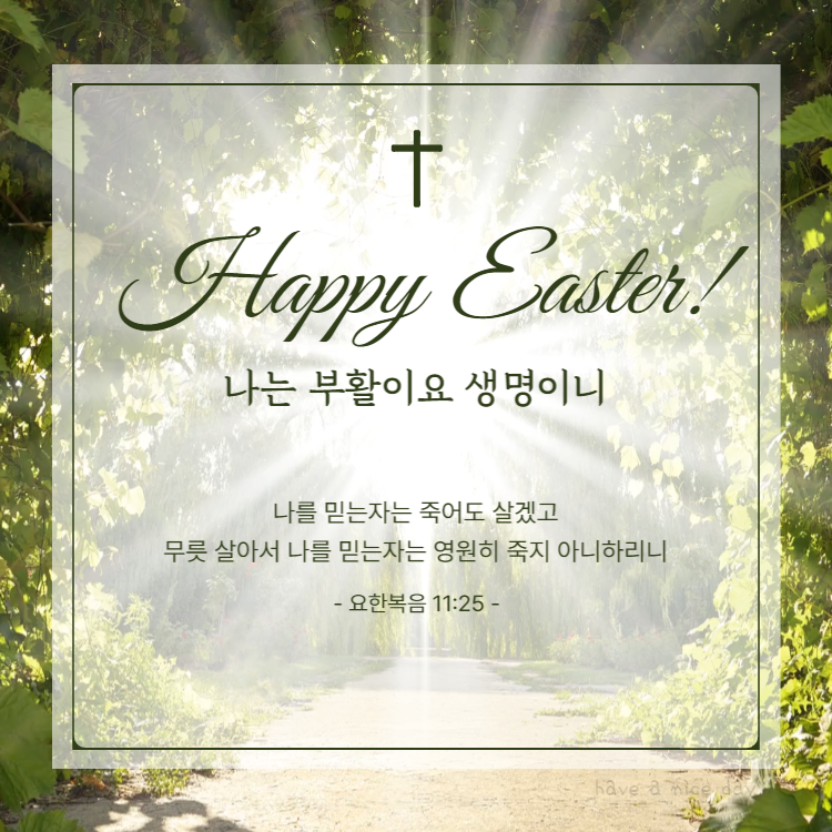 부활절 인사말 이미지, 성경구절입니다. 나는 불활이요 생명이니 나를 믿는자는 죽어도 살겠고 무릇 살아서 나를 믿는 자는 영원히 죽지 아니하리니. 요한복음 11:25