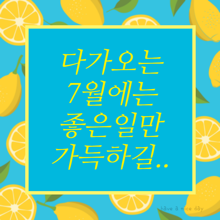 7월 시작과 함께 보내면 좋은 인사말 이미지 모음을 만들어 보았습니다. 올해의 하반기가 시작되는 7월 인사말 이미지를 만들어보았으니 다운로드하셔서 카톡이나 문자 메세지를 보내보세요. 7