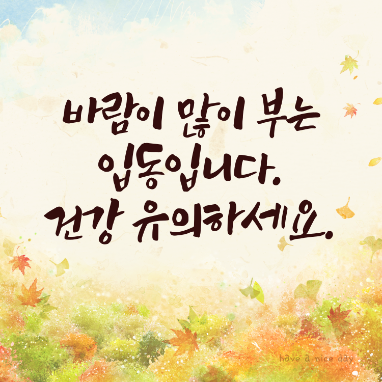 입동 날씨 인사말 이미지입니다. 바람이 많이 부는 입동입니다. 건강 유의하세요.